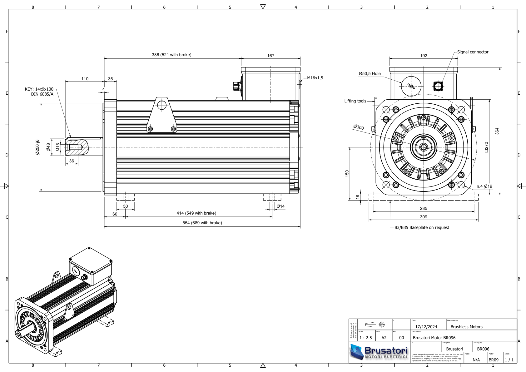 I servomotori della serie BR sono progettati per offrire le più elevate prestazioni dinamiche e trovano il loro impiego in applicazioni quali torni a controllo numerico, servopompe, macchine per la lavorazione metallo, macchine per il legno. L'utilizzo di magneti al Neodimio Ferro Boro a elevato prodotto di energia permette di ottenere motori con potenza specifica elevata in grado di sopportare grandi sovraccarichi senza rischi di smagnetizzazione. Il circuito magnetico è stato studiato per permettere ai motori di produrre una F.e.m. sinusoidale con ripple di coppia ridotti. Le basse inerzie rotoriche garantiscono la possibilità di avere elevate accelerazioni e decelerazioni.