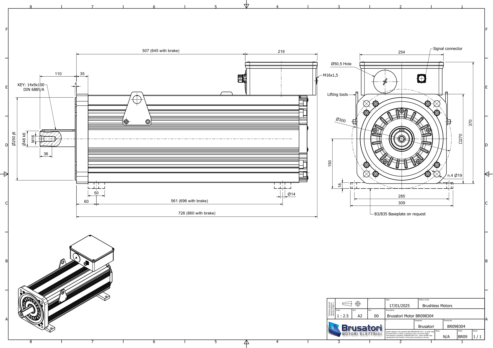 I servomotori della serie BR sono progettati per offrire le più elevate prestazioni dinamiche e trovano il loro impiego in applicazioni quali torni a controllo numerico, servopompe, macchine per la lavorazione metallo, macchine per il legno. L'utilizzo di magneti al Neodimio Ferro Boro a elevato prodotto di energia permette di ottenere motori con potenza specifica elevata in grado di sopportare grandi sovraccarichi senza rischi di smagnetizzazione. Il circuito magnetico è stato studiato per permettere ai motori di produrre una F.e.m. sinusoidale con ripple di coppia ridotti. Le basse inerzie rotoriche garantiscono la possibilità di avere elevate accelerazioni e decelerazioni.